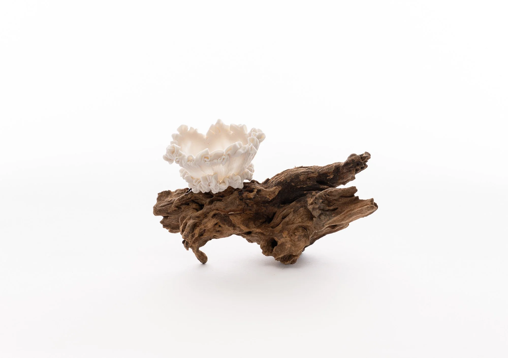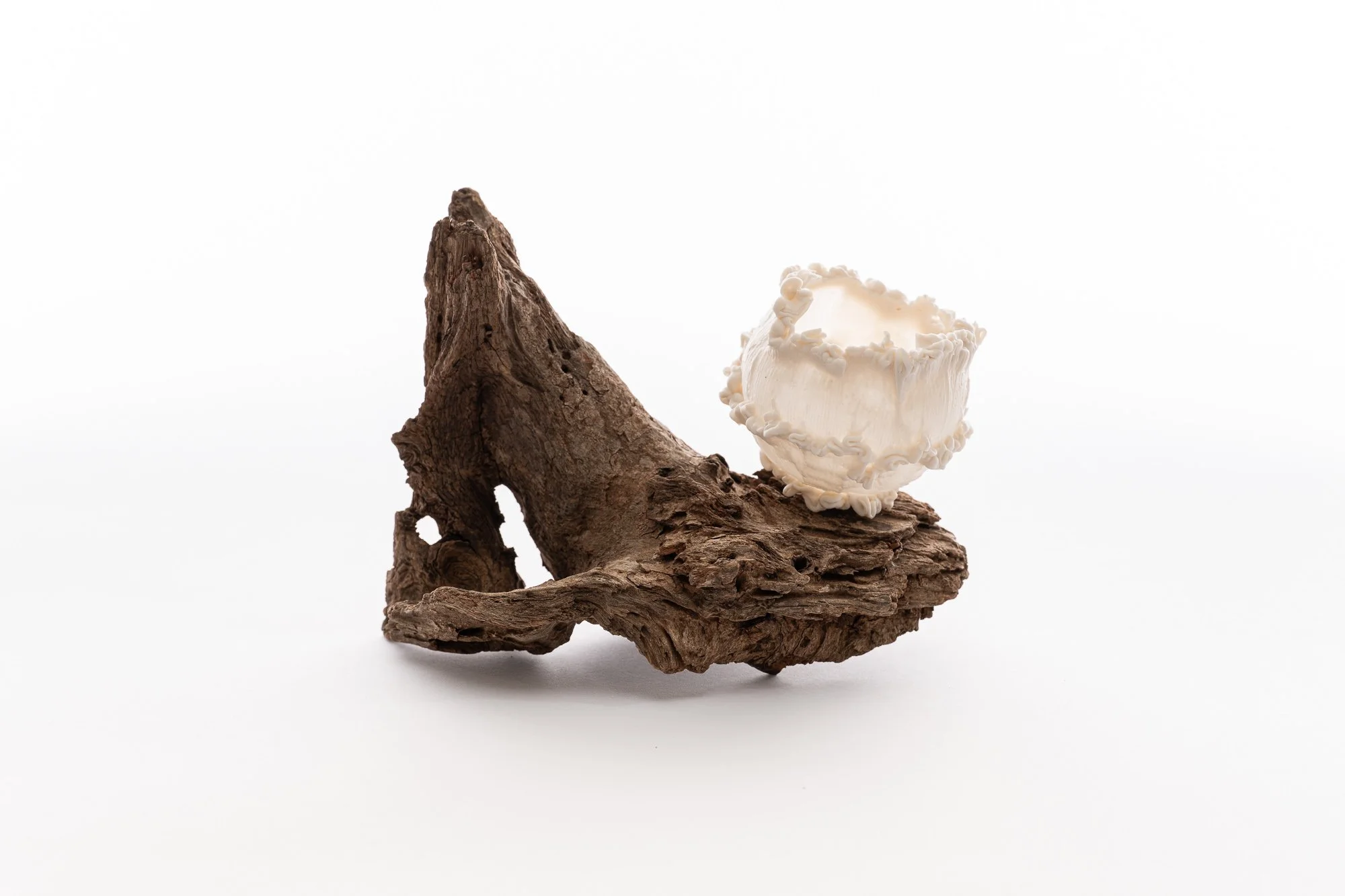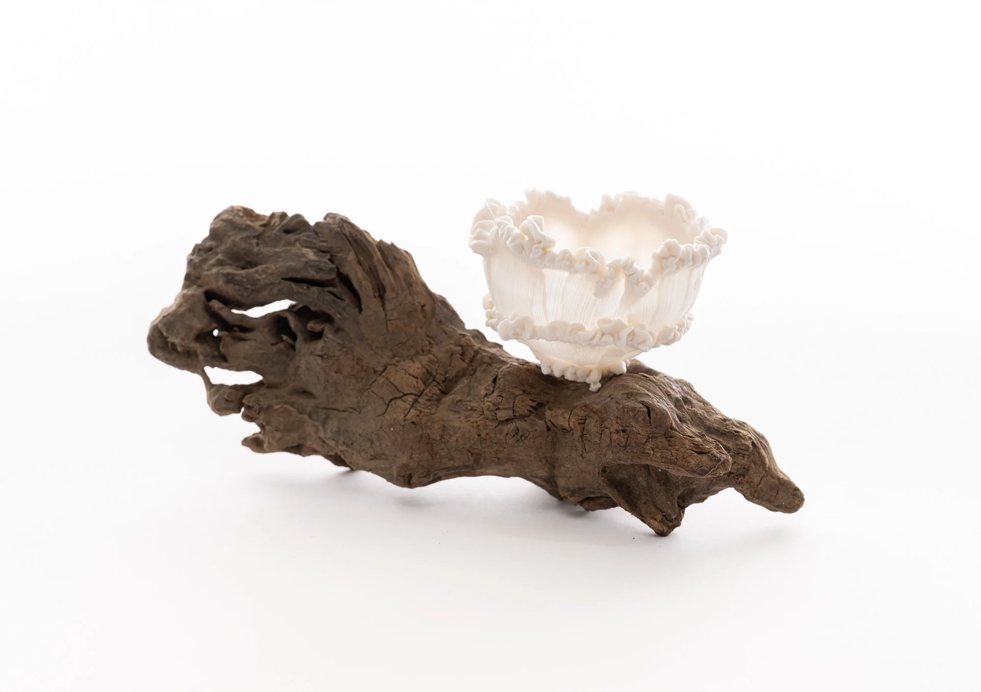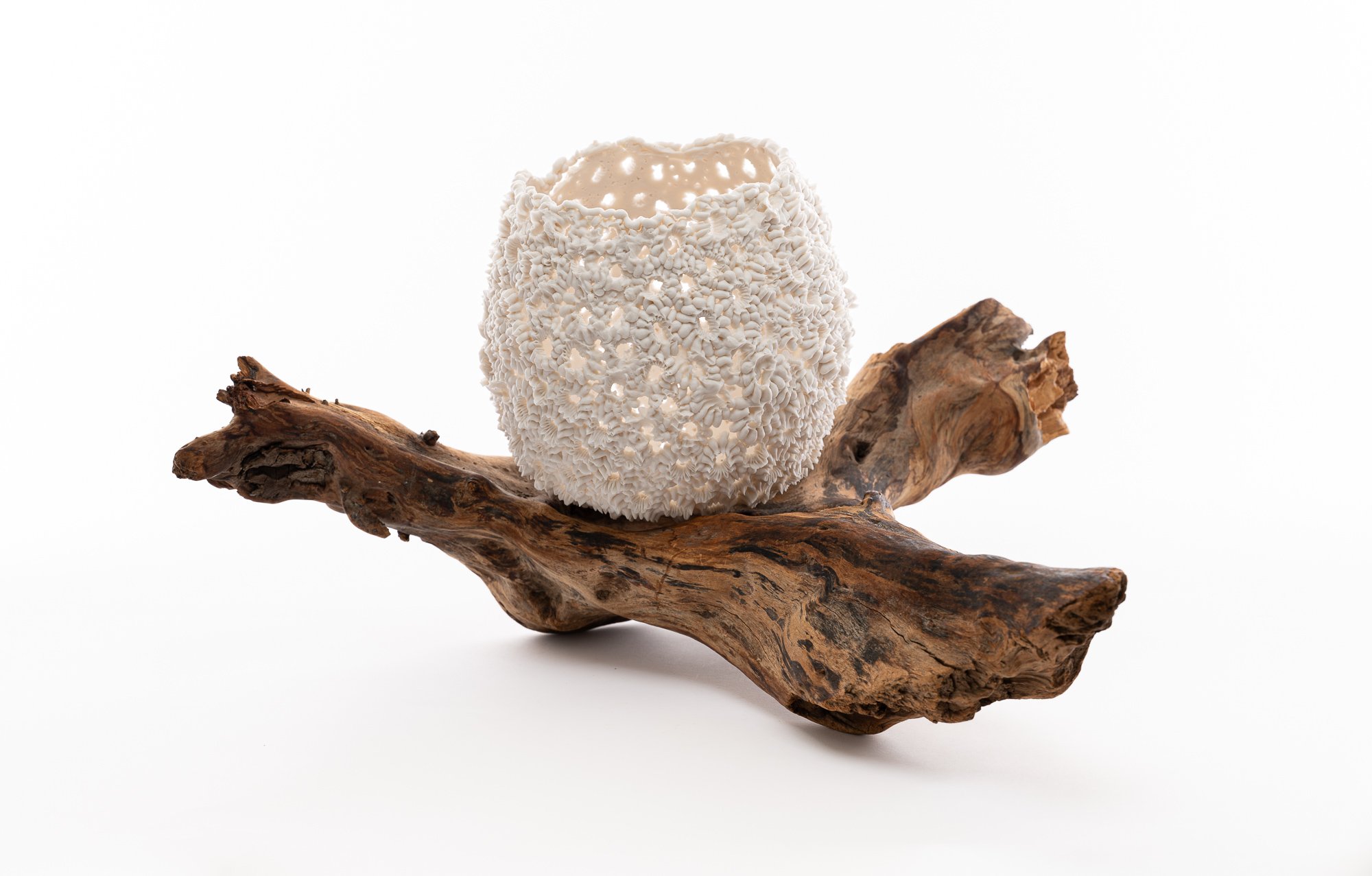These porcelain and driftwood pieces are part of my Ritual Vessel Series. These one of a kind translucent porcelain vessels were created for ritual use. They can also be appreciated as special non ritual vessels. I use mine as a tool to support my stress relief journey. I use the bowl area to feature small natural items that I collect on my daily walks. Some recent examples include tiny acorns, buckeyes, sea shells, and pine cones. I place these found elements in the porcelain vessel. Each time I walk by the special element, I try to stop, appreciate it , and be present. I change out my natural items seasonally. I would love to see images of how you use yours. Enjoy!