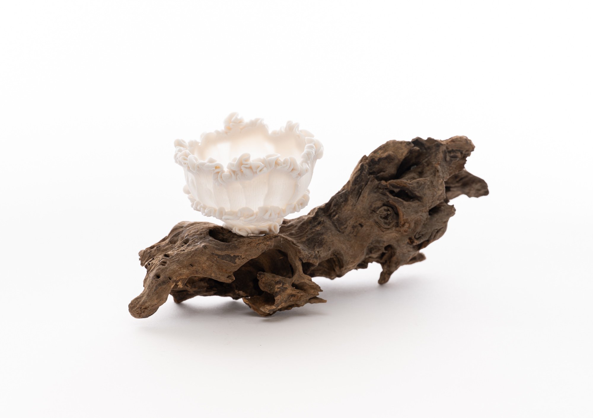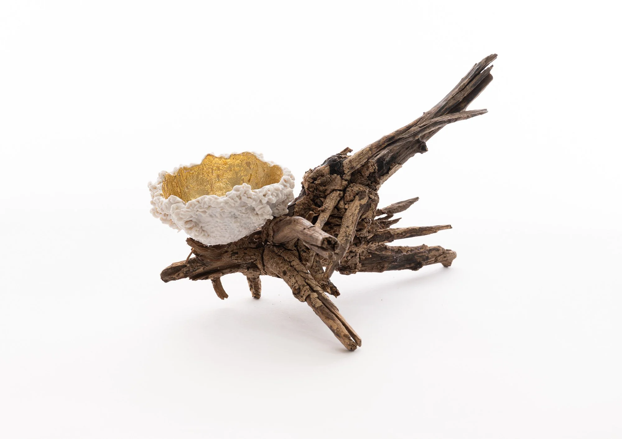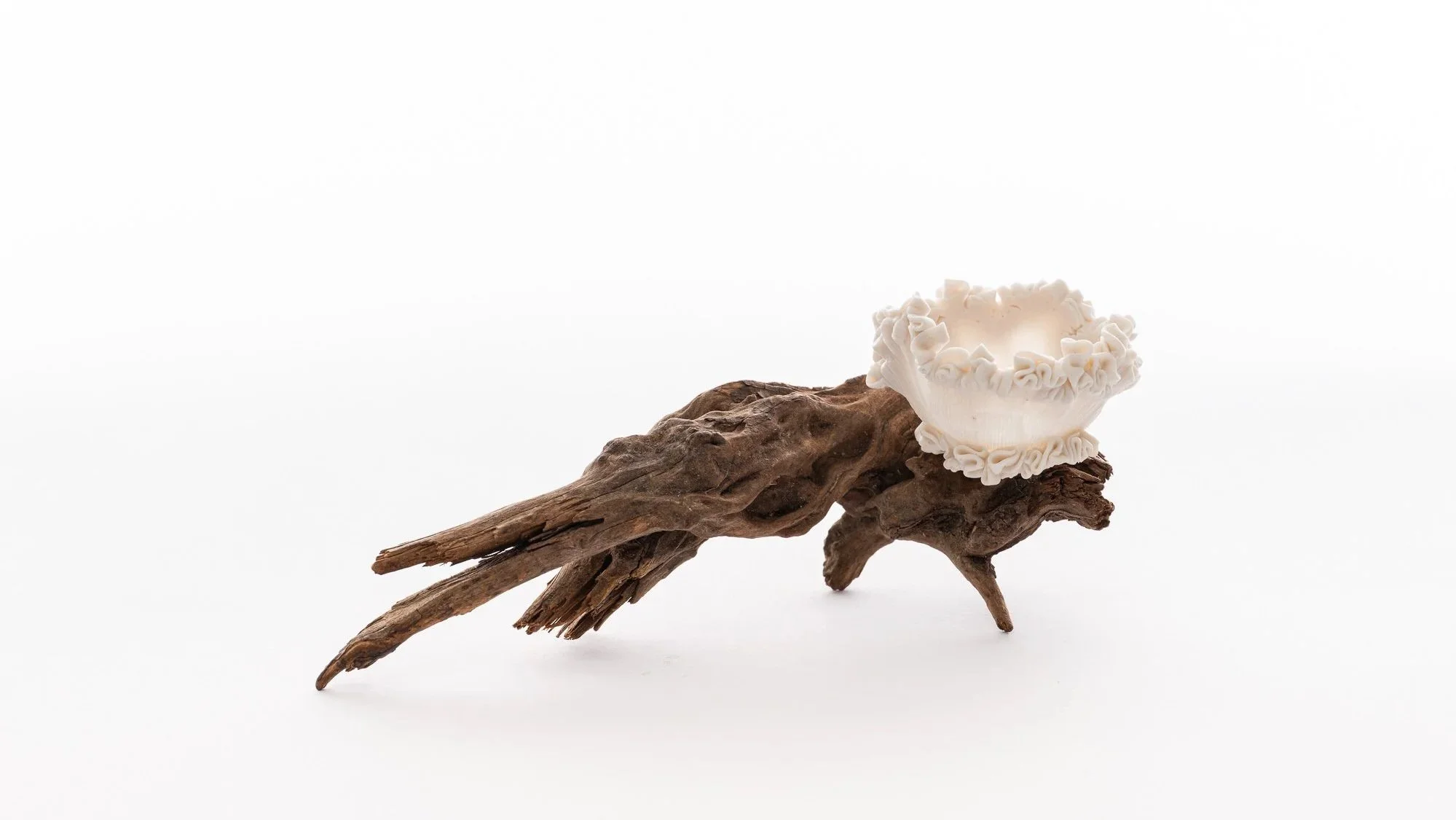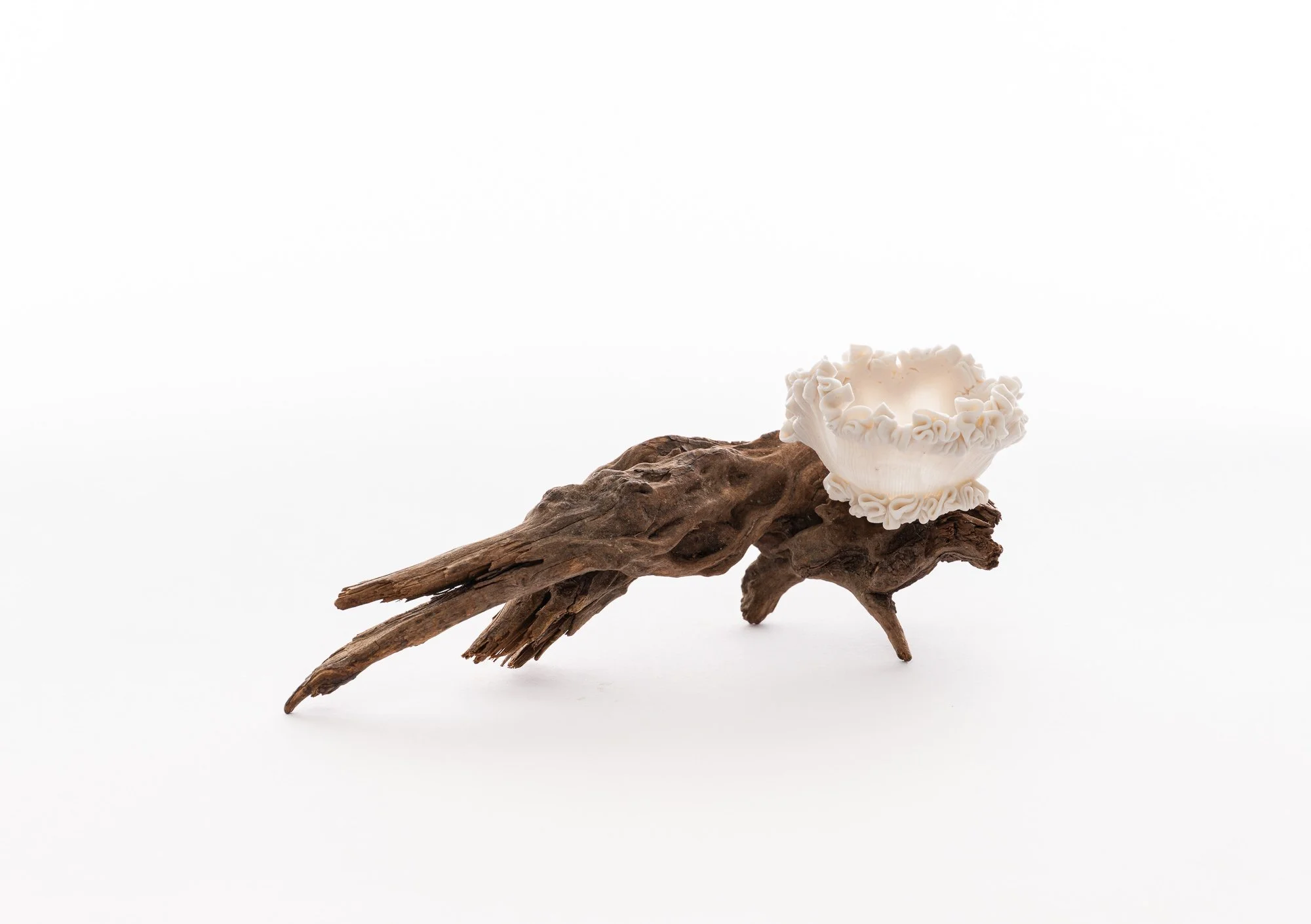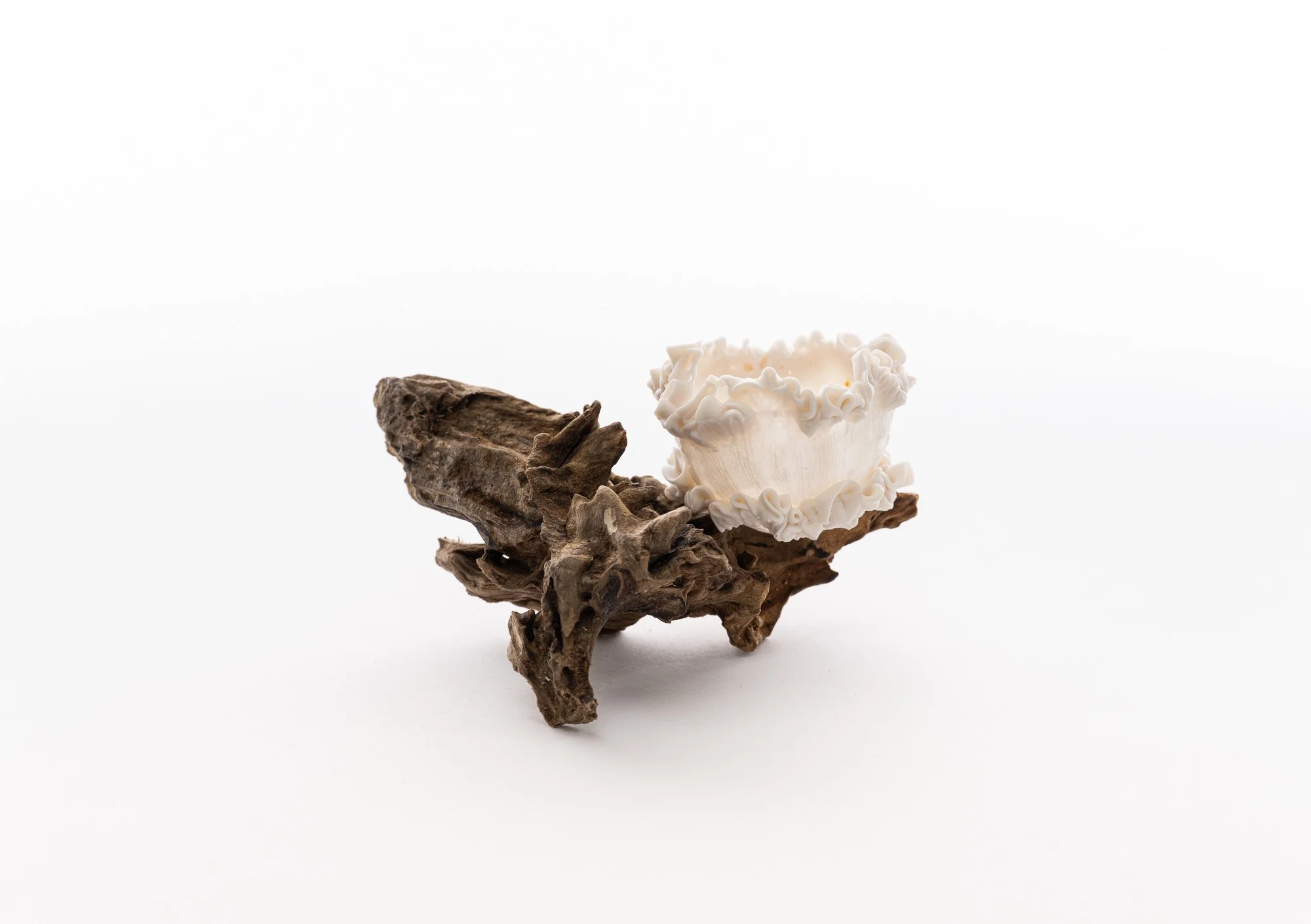 These porcelain and driftwood pieces are part of my Ritual Vessel Series. These one of a kind translucent porcelain vessels were created for ritual use. They can also be appreciated as special non ritual vessels. I use mine as a tool to support my stress relief journey. I use the bowl area to feature small natural items that I collect on my daily walks. Some recent examples include tiny acorns, buckeyes, sea shells, and pine cones. I place these found elements in the porcelain vessel. Each time I walk by the special element, I try to stop, appreciate it , and be present. I change out my natural items seasonally. I would love to see images of how you use yours. Enjoy!